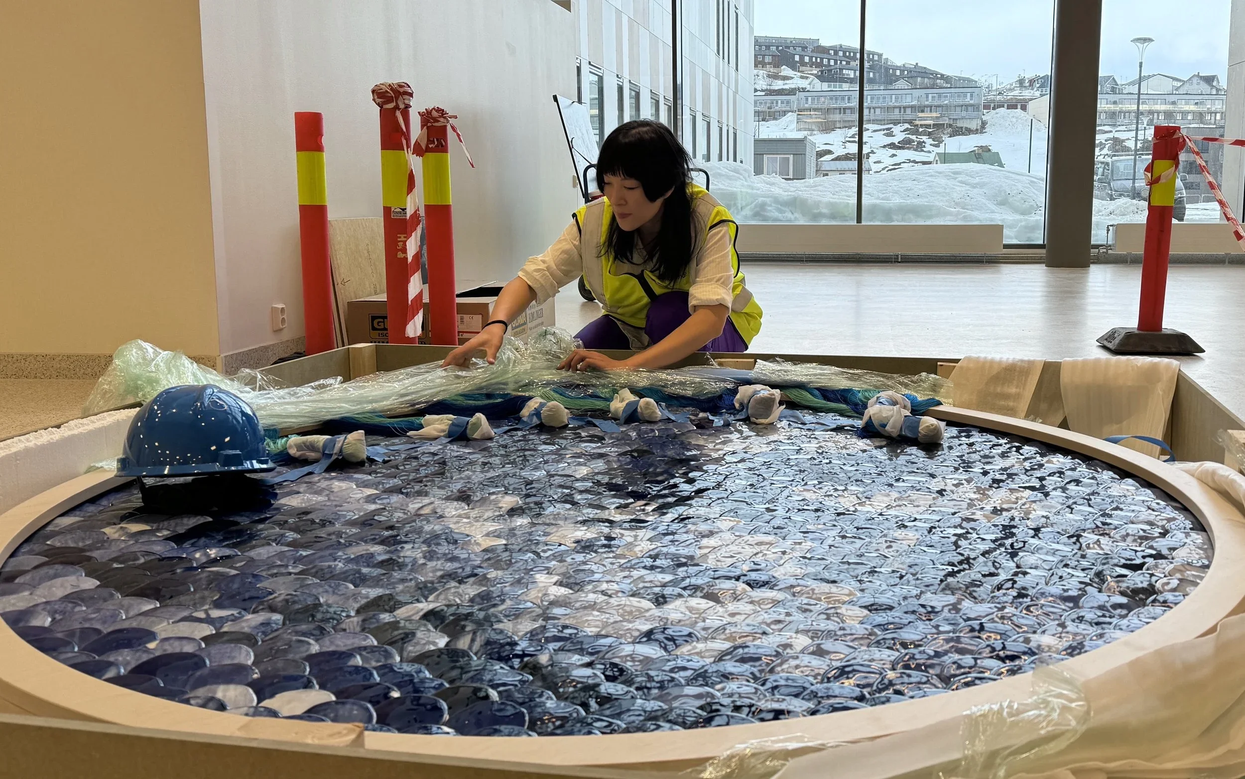 王琳在挪威新哈默菲斯特医院(New Hammerfest hospital)安装委托创作的陶瓷装置作品