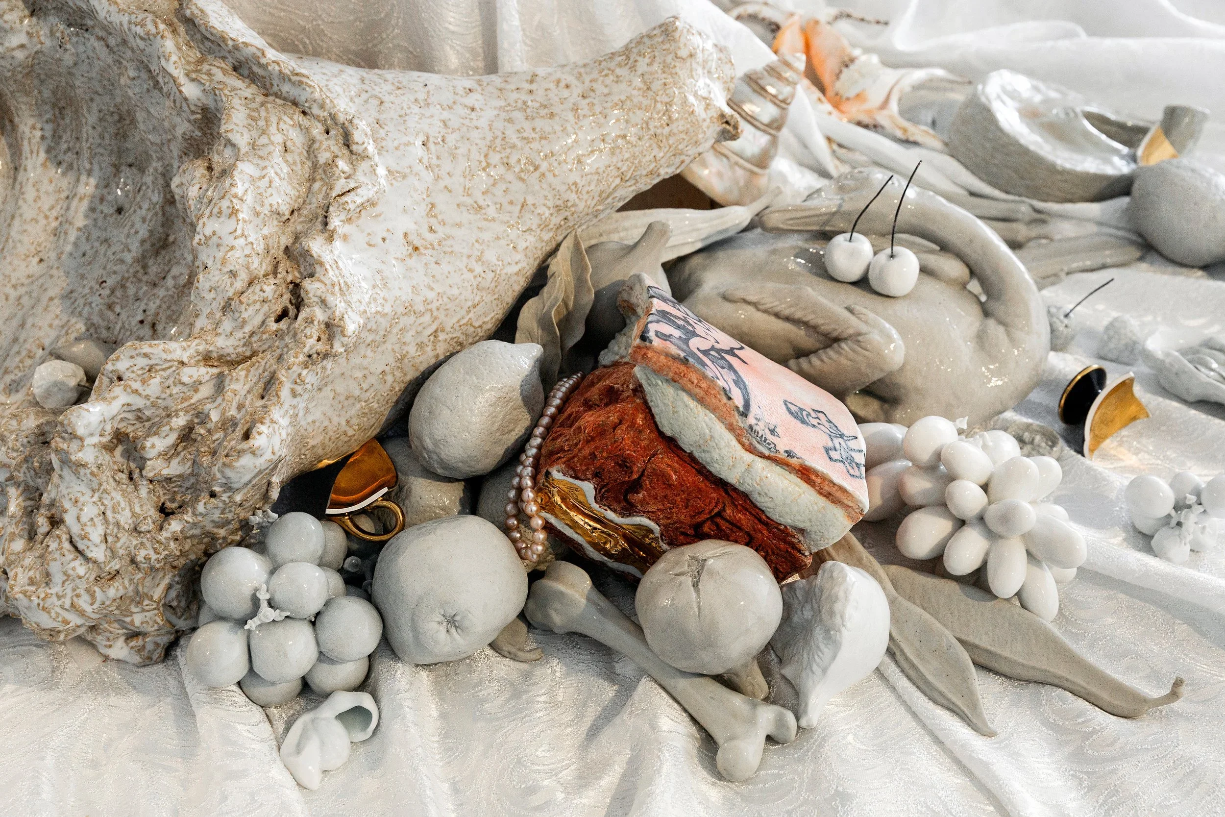 Q: Are the parts that look like meat in your works also made of ceramics? They look so realistic—how exactly did you make them? It's amazing.