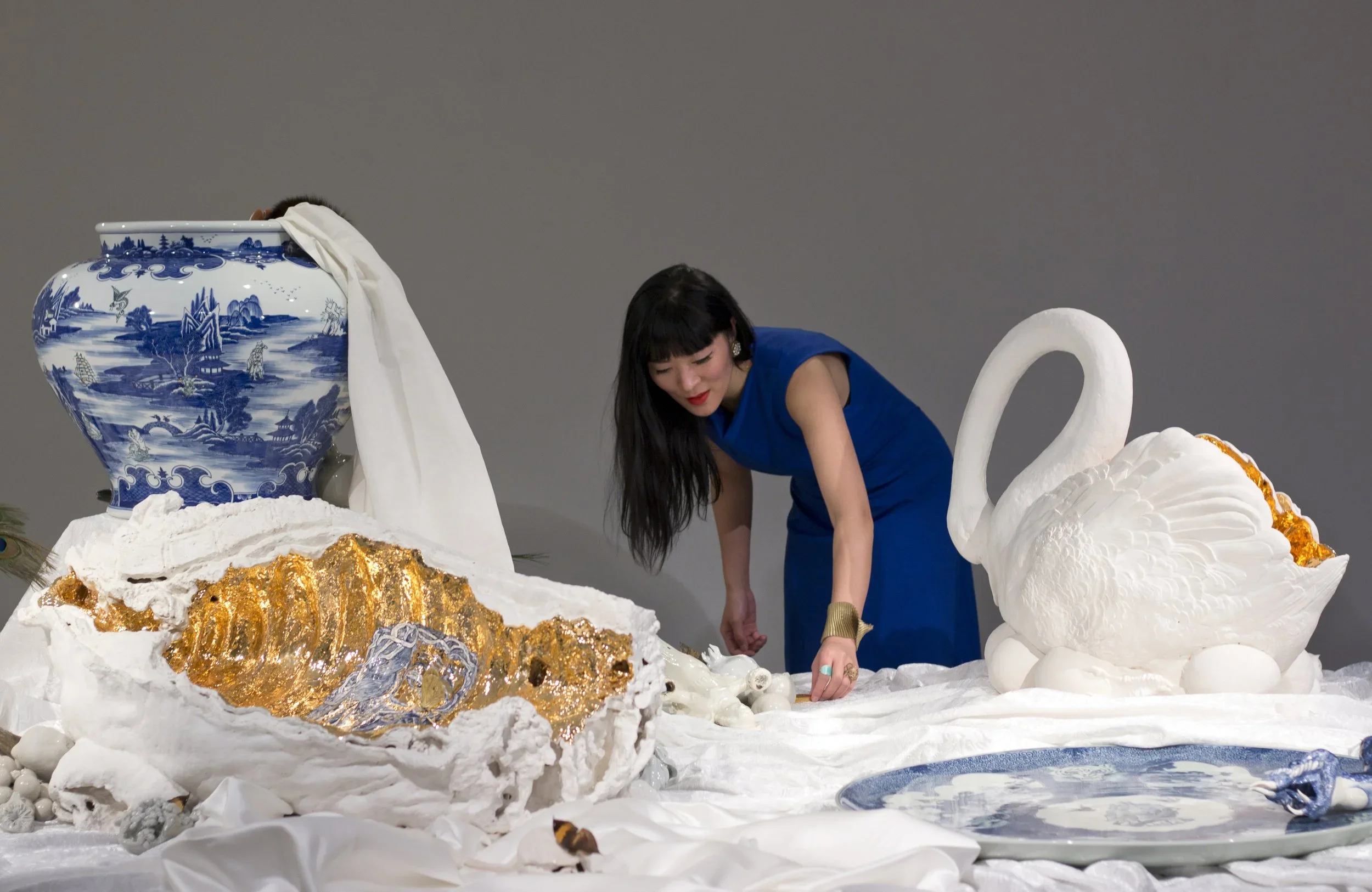 But your starting point seems different. I saw you in a video interview talking about how you researched the evolutionary history of blue and white porcelain through trade from China to the West. Could you talk about your understanding of blue and white porcelain history? And what does choosing blue and white porcelain as an element mean to you?